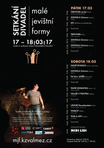 Po devětatřicáté se ve Valašském Meziříčí uskuteční soutěžní postupová přehlídka amatérských divadel z Moravy aneb Setkání divadel – Malé jevištní formy. Prostory místního Kulturního zařízení budou patřit jedenácti souborům, které zde ve dvou dnech, od pátku 17. do soboty 18. března, uvedou celkem čtrnáct inscenací. Dvoudenní maraton zakončí koncert kapely Midi lidi. Vstupenky na přehlídku i závěrečný koncert jsou v prodeji.